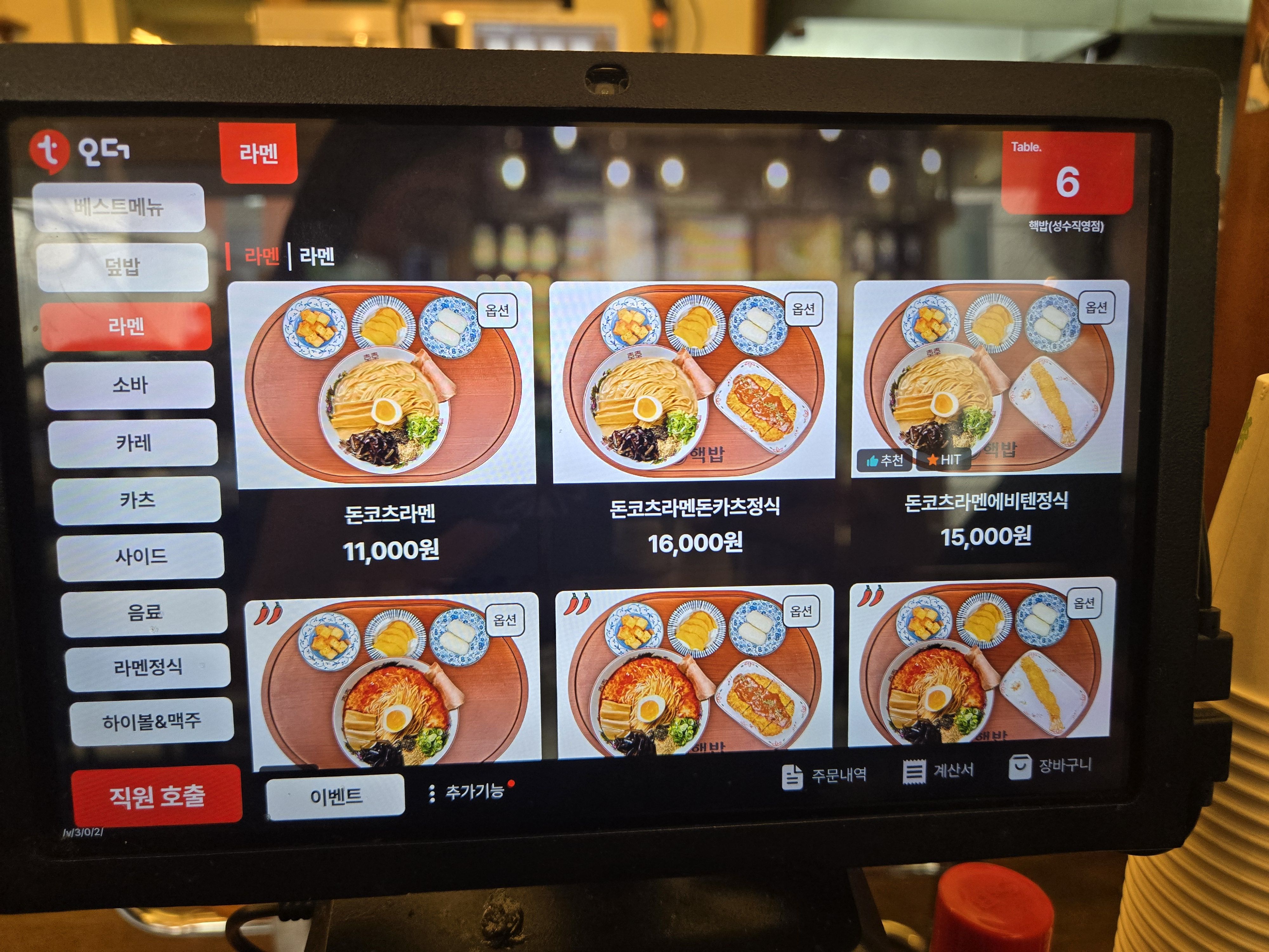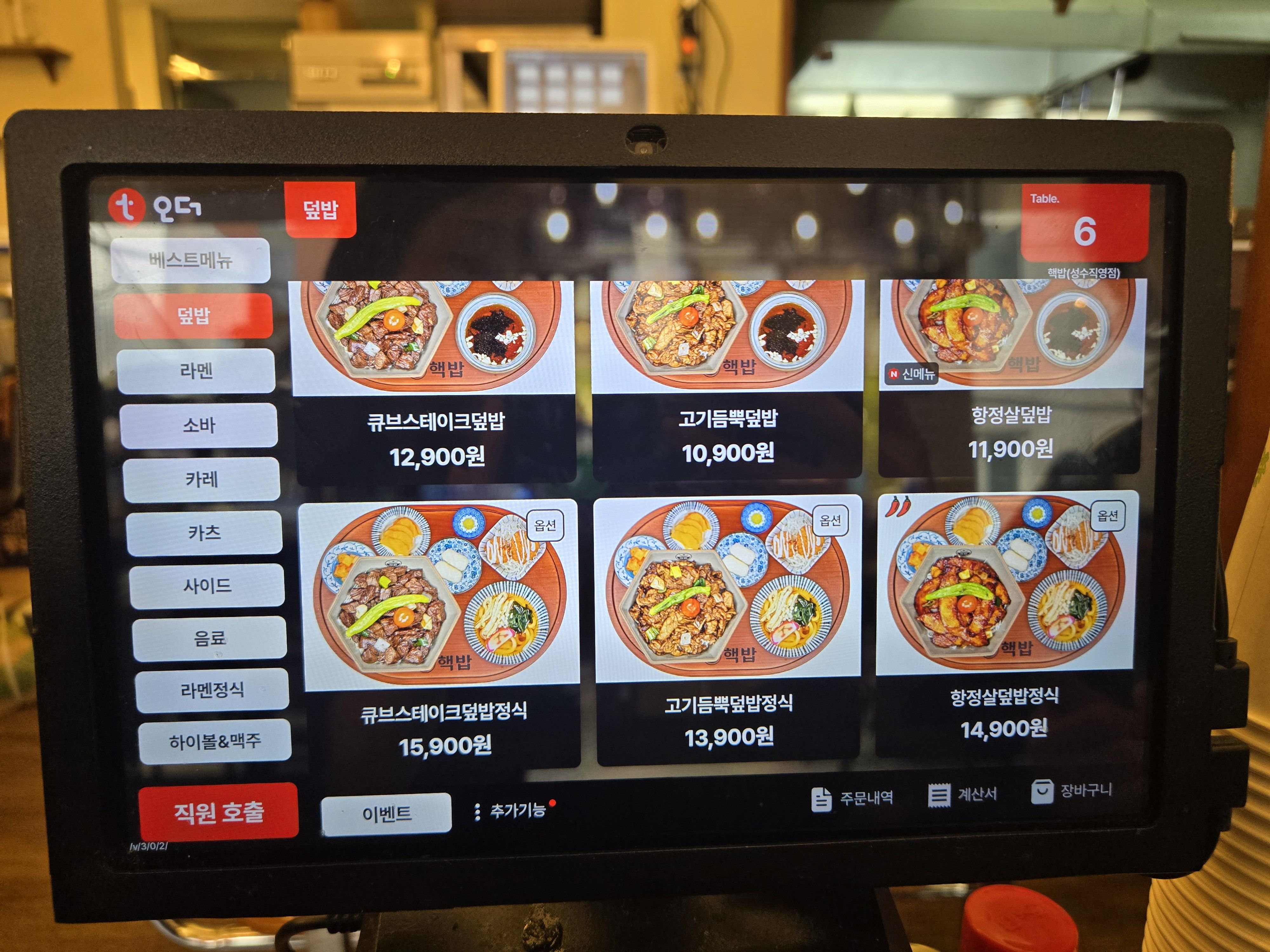 내부는 전체적으로 우드톤 인테리어로 되어 있으며 2인석과 4인석이 주로 구성되어 있었고 좌석 간 간격이 넓어서 옆자리 눈치 안 보고 식사할 수 있었어요.