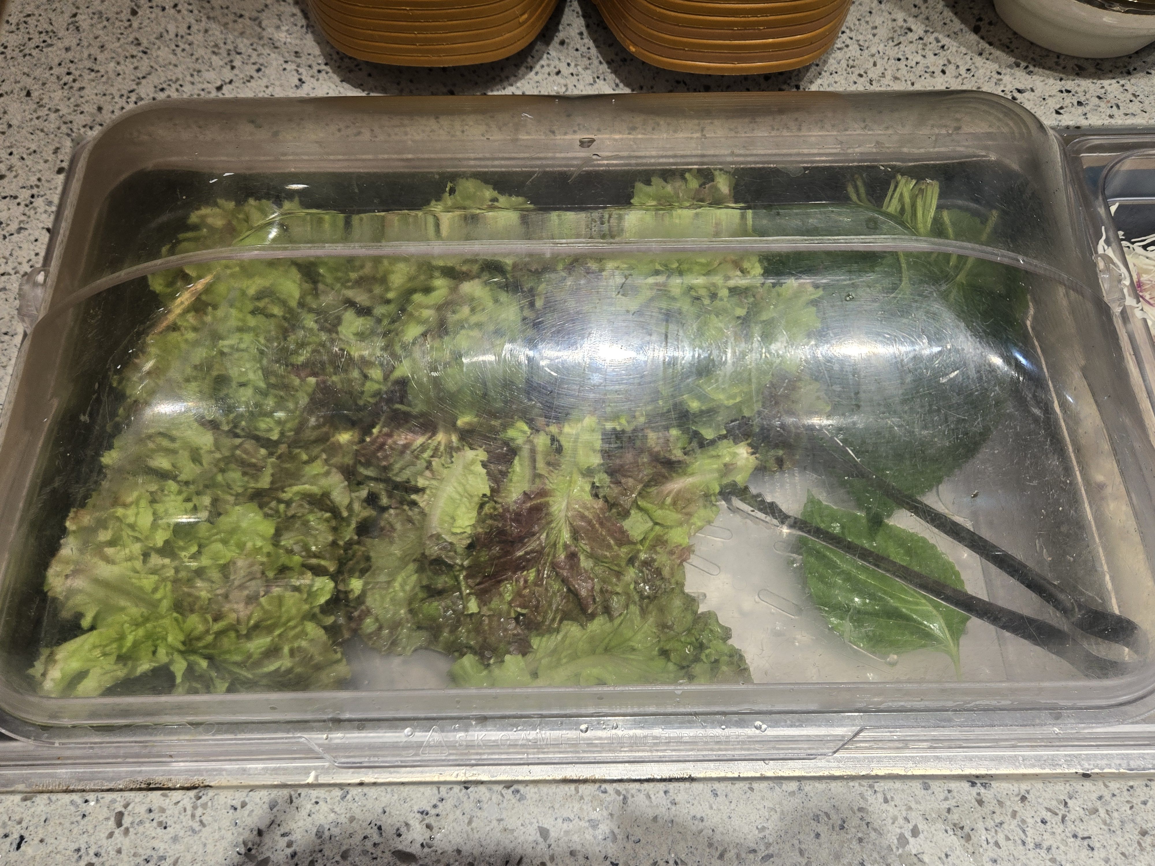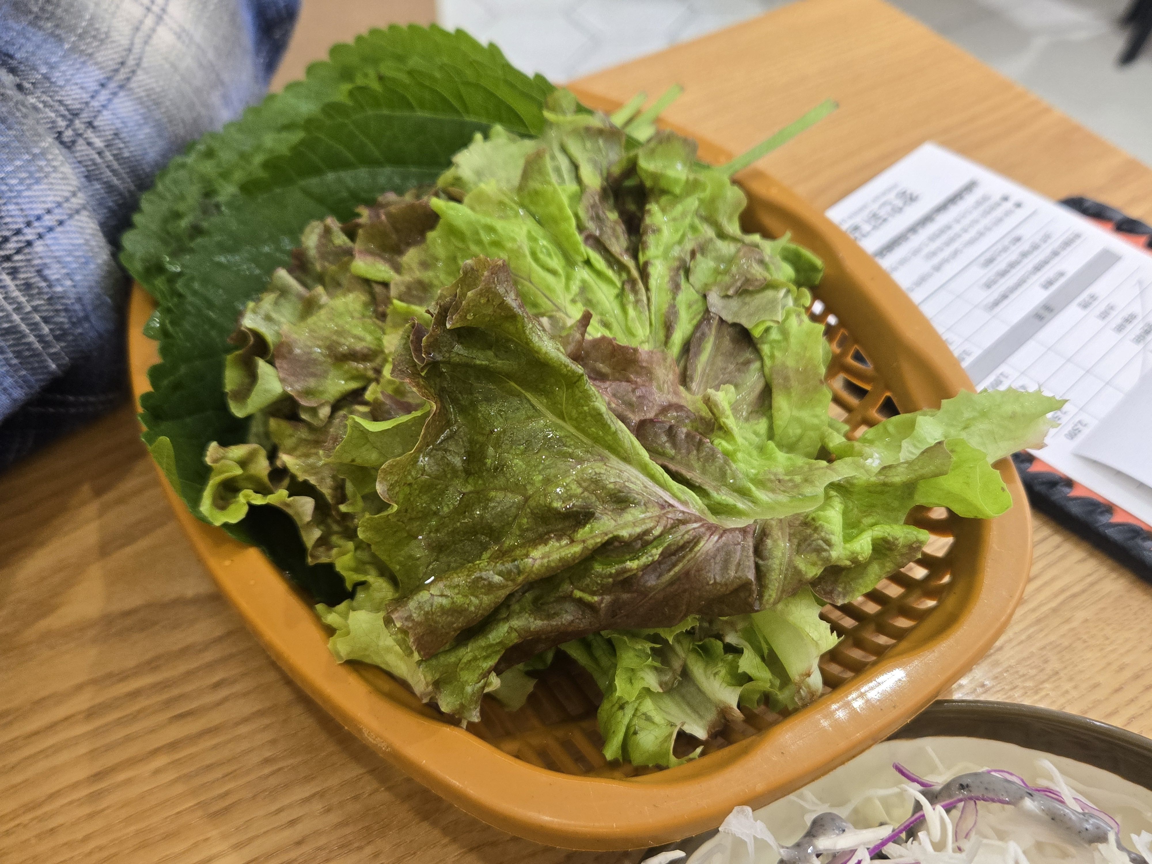 저는 양배추샐러드랑 상추, 깻잎, 쌈무를 담아왔어요.