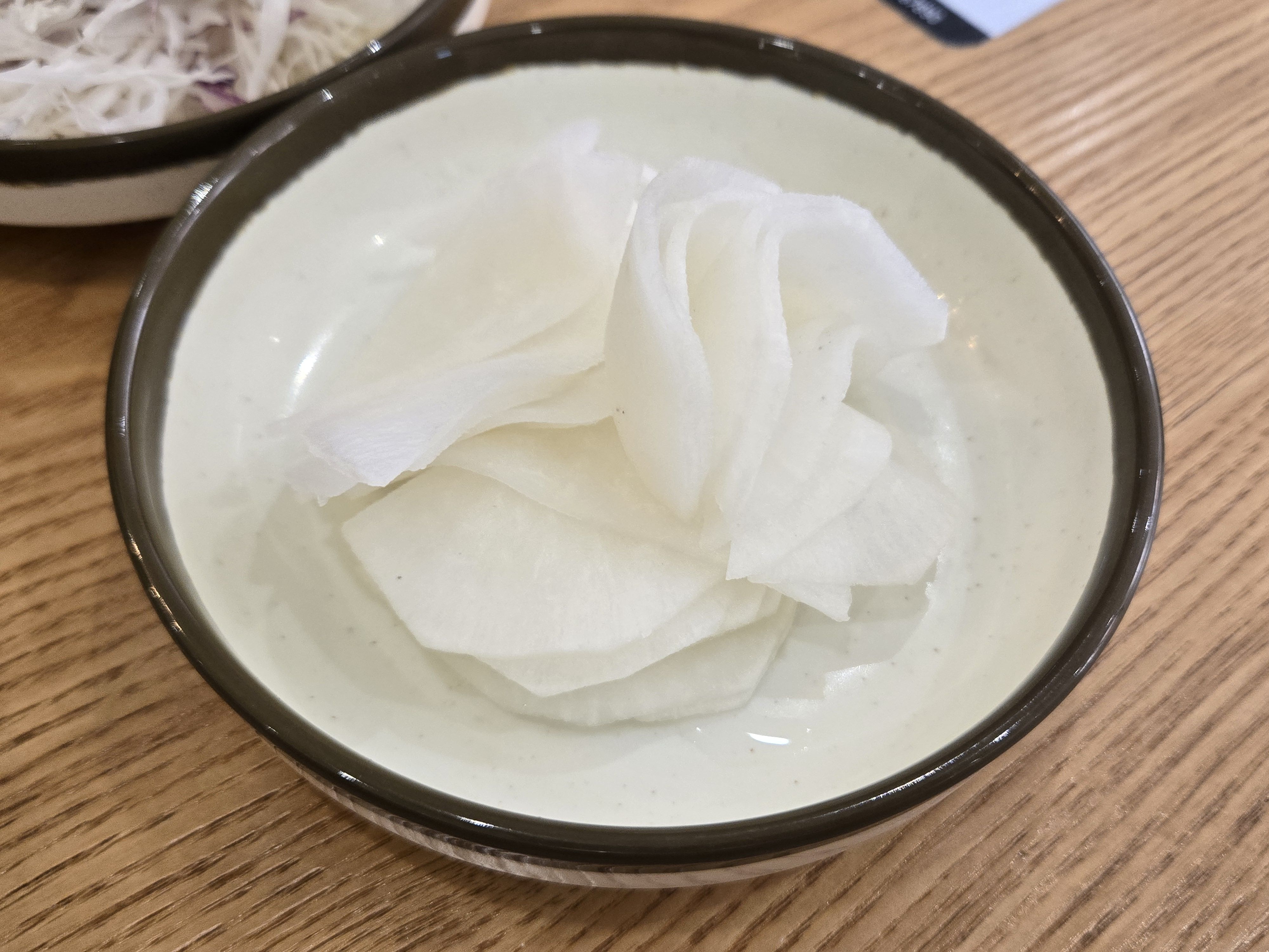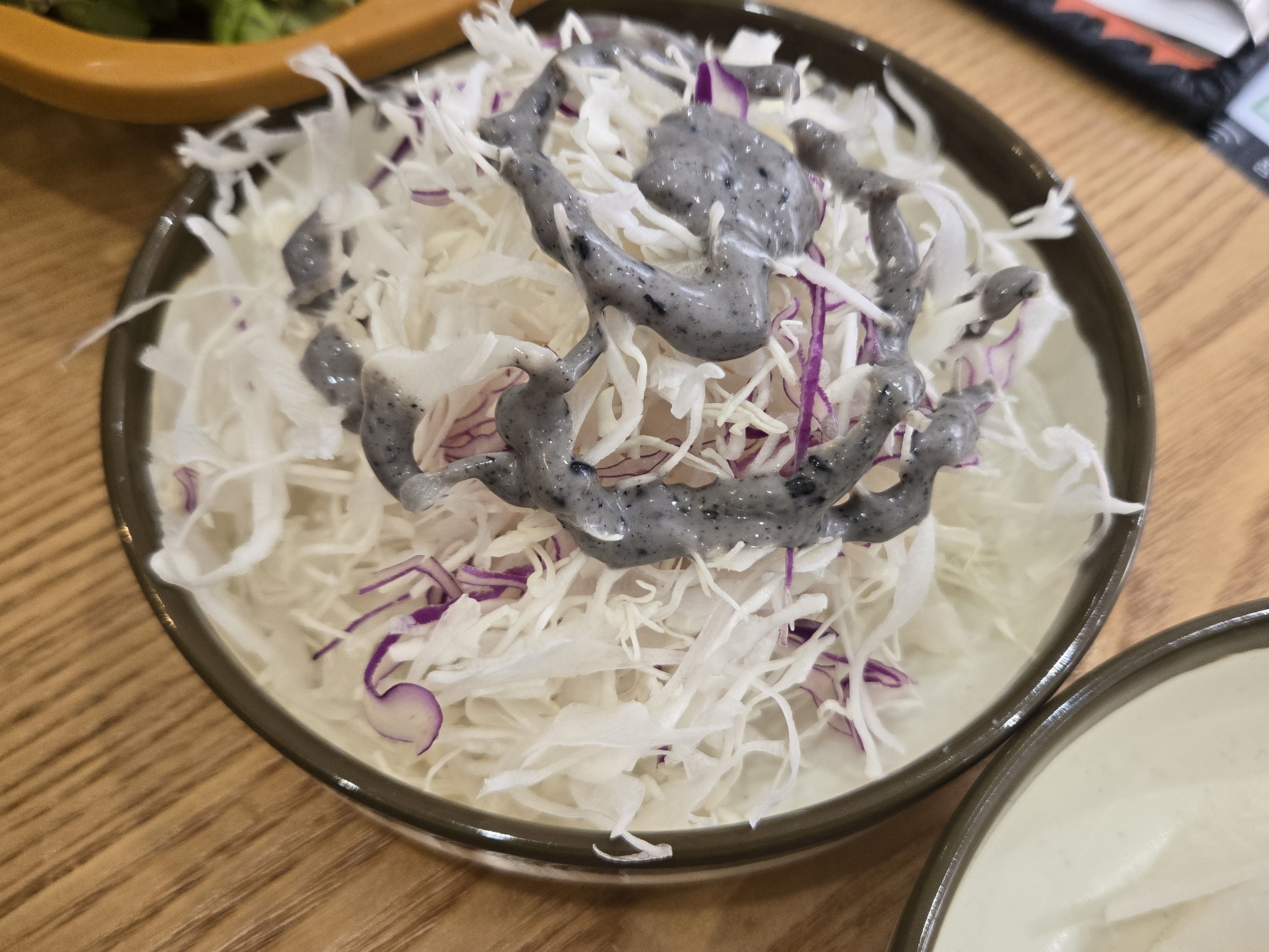 양배추샐러드는 새콤한 소스가 살짝 뿌려져 있어서 닭갈비랑 같이 먹으면 느끼하지 않을 것 같았어요.