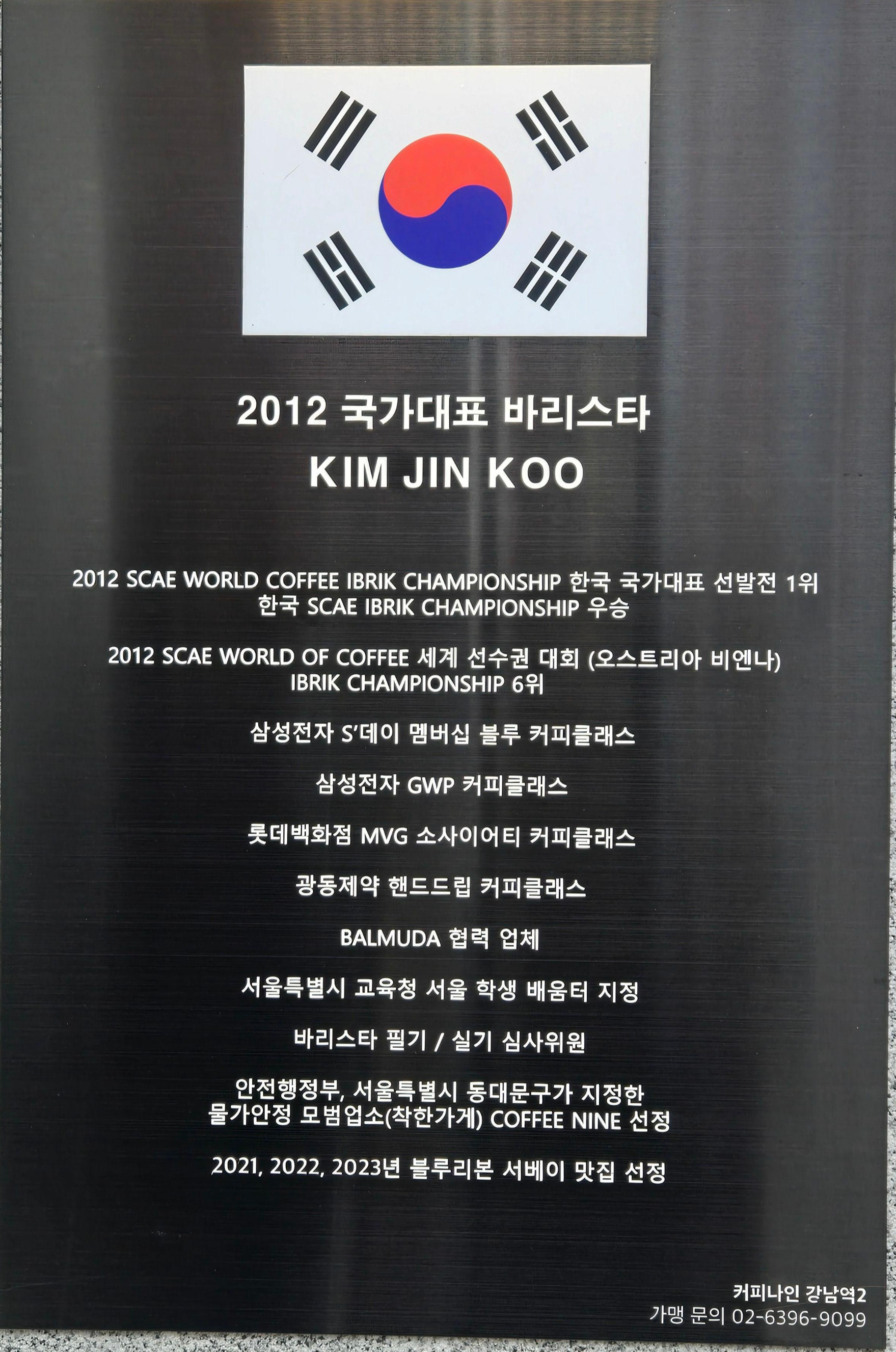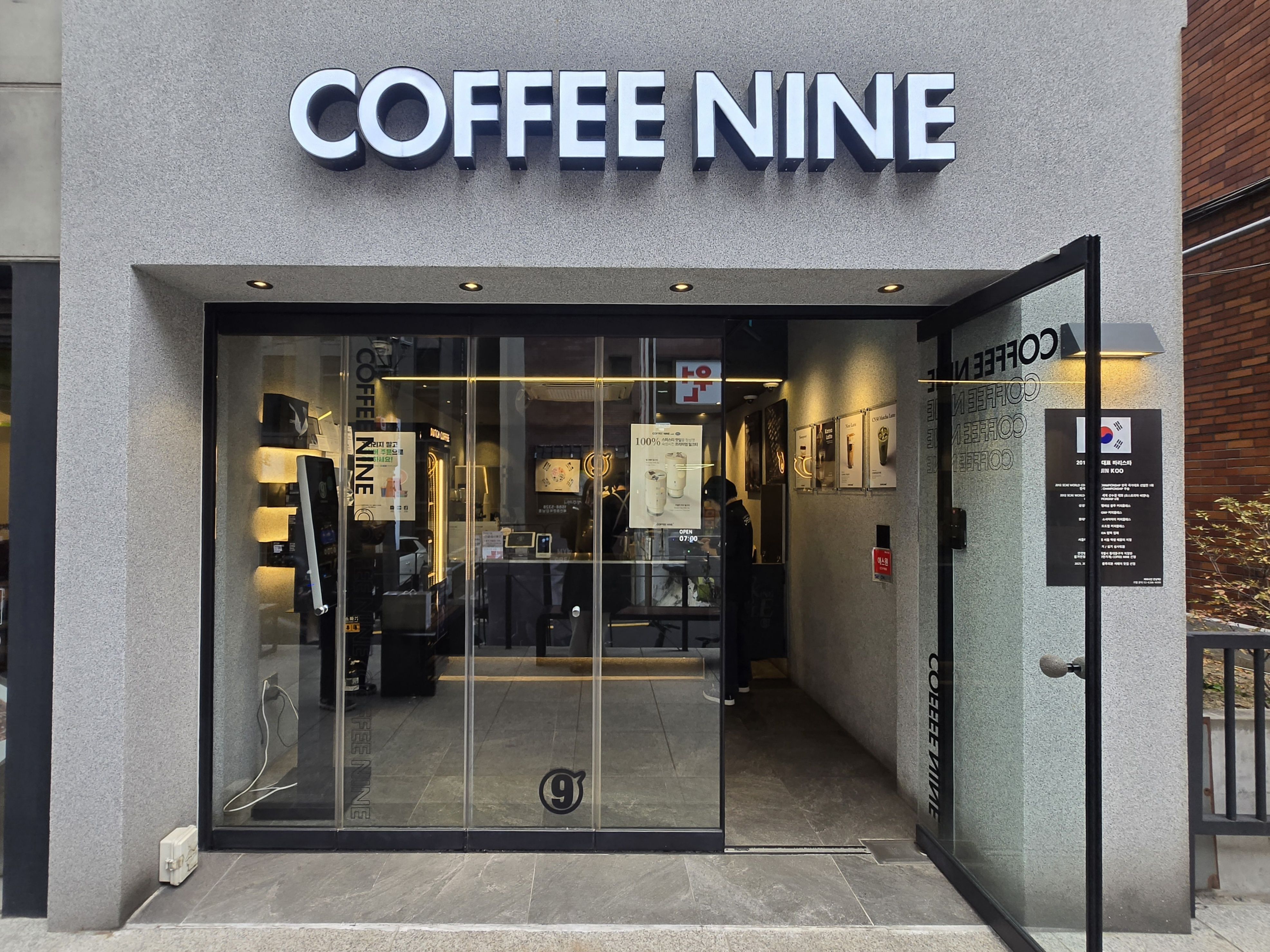 커피나인 강남역2호점 체인점으로 2012 국가대표 바리스타 김진구님이 운영하시는 곳으로 알려져 있어요.